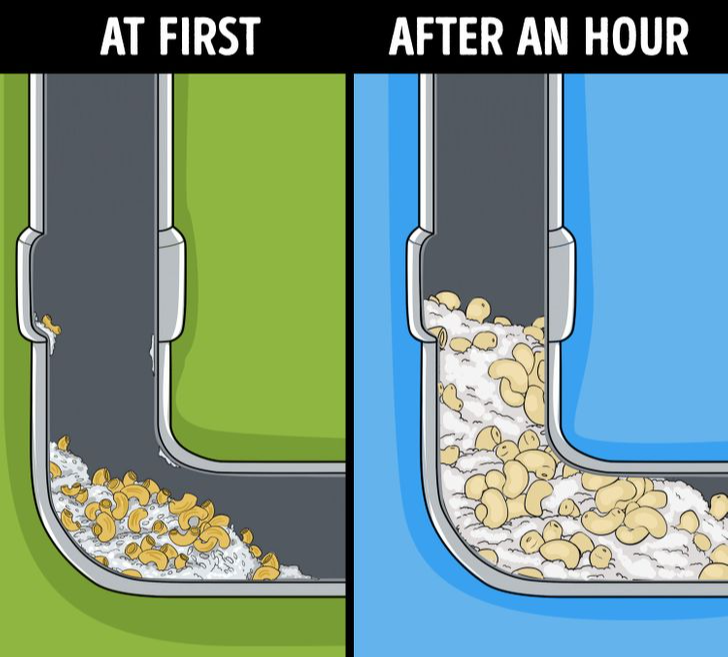 Beloved staples like pasta and rice swell as they absorb water. When rinsed into a sink, they can cluster, stick, and form a dense plug inside pipes.
