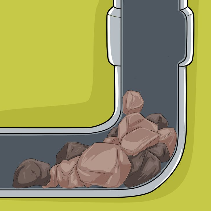 Dust, grout, plaster, and fine particles can harden like cement when wet inside plumbing. Larger fragments block outright while powder settles, layering into rigid constrictions.