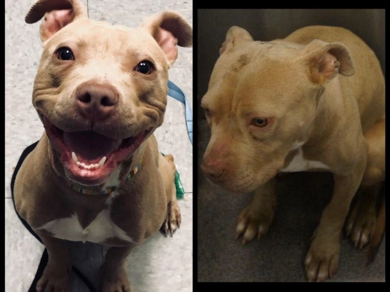 Lou once looked anxious and defeated. Now his relaxed, smiling face proves how love transforms a dog.
