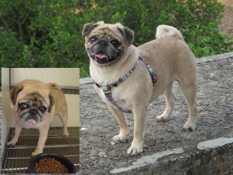 Patches’ adopter proudly showed his dramatic transformation into a healthy, adored pug.