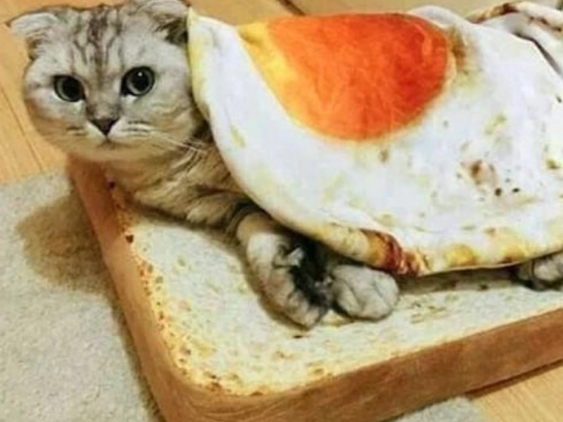 It is just a cat on a bread shaped pillow
