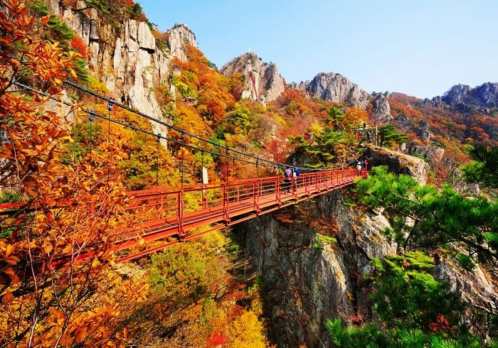 In Wolchulsan National Park, the Cloud Bridge clings to cliffs with dramatic elevation and steep approach. Its fierce reputation draws hikers eager to test resolve and savor sweeping mountain views.