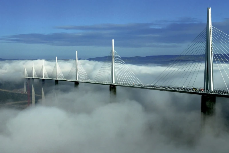 Soaring over the Tarn Valley, the Millau Viaduct is a modern French icon. Its pylons pierce low clouds at 1,125 feet, making it the world's tallest bridge. The glide across delivers sweeping horizons that thrill some and unsettle anyone uneasy with heights. Slim deck, vast sky, profound void.