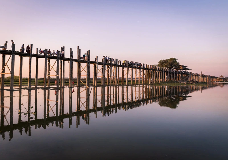Dating to 1850, U Bein is the world's longest teak bridge, arching across Taungthaman Lake. Weathering and decay pose ongoing challenges, and patrols help maintain safe passage. It remains a vital link and a symbol of enduring heritage.