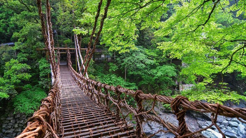 Hidden in the Iya Valley, Kazurabashi is woven from mountain vines, echoing old frontier craft. Its creaks, sway, and gaps reveal the river beneath. Steel cables are renewed every few years, yet the crossing still feels fragile and timeless.