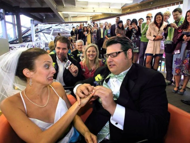 A fleeting doubtful glance hints at the enormity of the commitment, instantly morphing into comedic gold. Guests will repeat this expression’s story for decades. Humor diffuses nerves, converting stress into a crowd bonding moment.