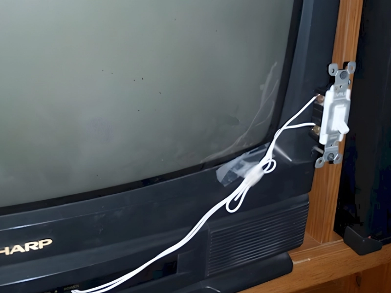 The engineering skills required to create this setup far exceed those needed for simply purchasing a new TV for $600. In the 1990s, televisions were priced between $130 and $140, while light switches like the one used in this project can be found for less than $1.