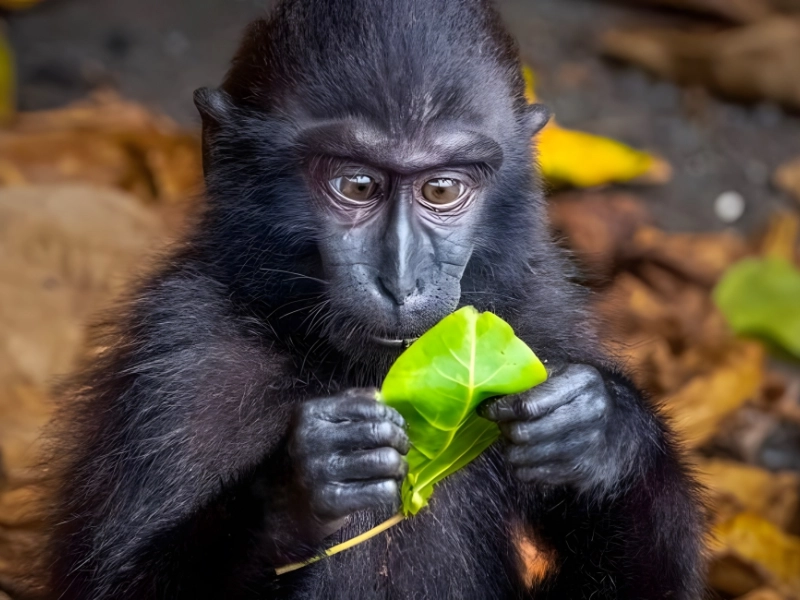 The macaque’s intense focus feels almost human, reminding us of the curiosity threading through all living beings.