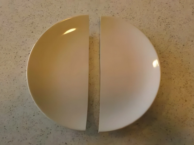 What happened: Plate broke exactly in half Where: Unknown Dropping a plate usually creates shards, but this one snapped into two flawless halves.