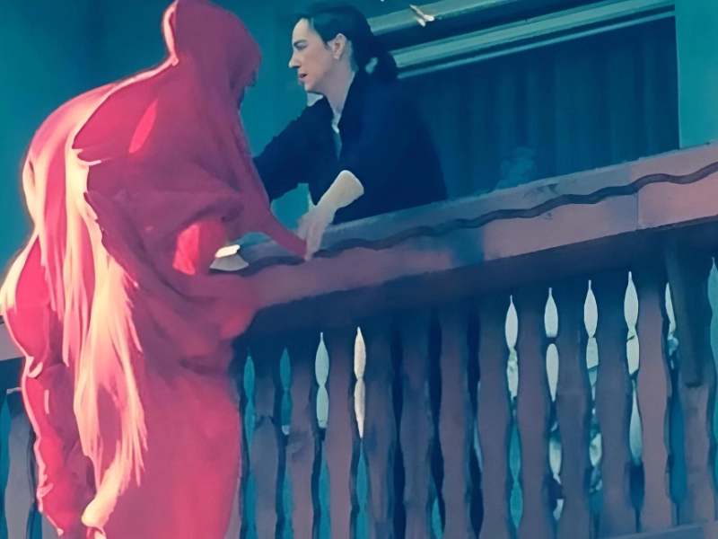 Lacking context, viewers may assume spirit contact or ritual. The pale form and her calm face blur normal life with the unreal, inviting invented stories.