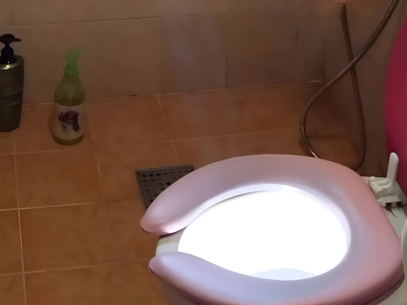 This frame feels cinematic. Light washing the toilet grants a treasure reveal vibe, as if a hero has found a secret cache. Illumination and angle elevate the mundane into wonder.